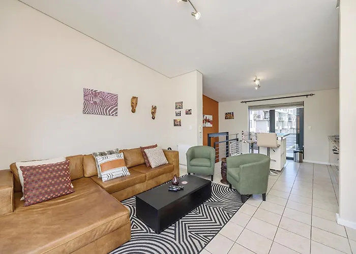 The 45 m² Delightful 2Bd Townhouse In Woodstock Apartment Cape Town is located 3.3 km from the imaginatively designed South African Jewish Museum and 10 minutes by car from the Slave Lodge Museum. For guests seeking an active stay, the apartment grants access to a golf club.
